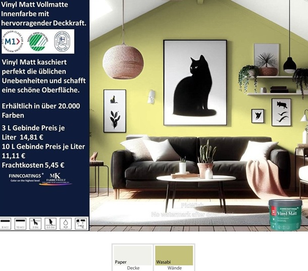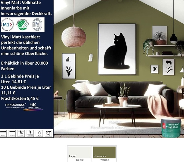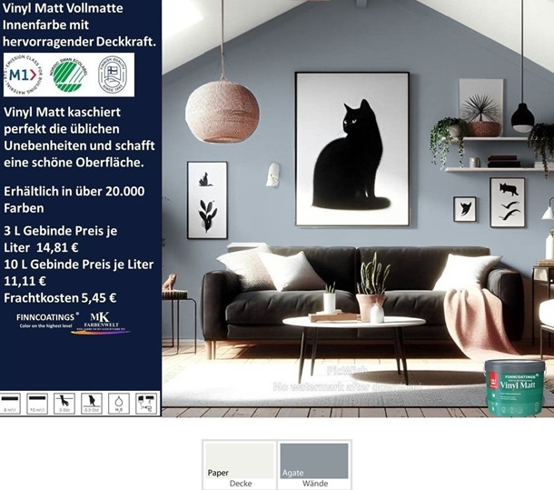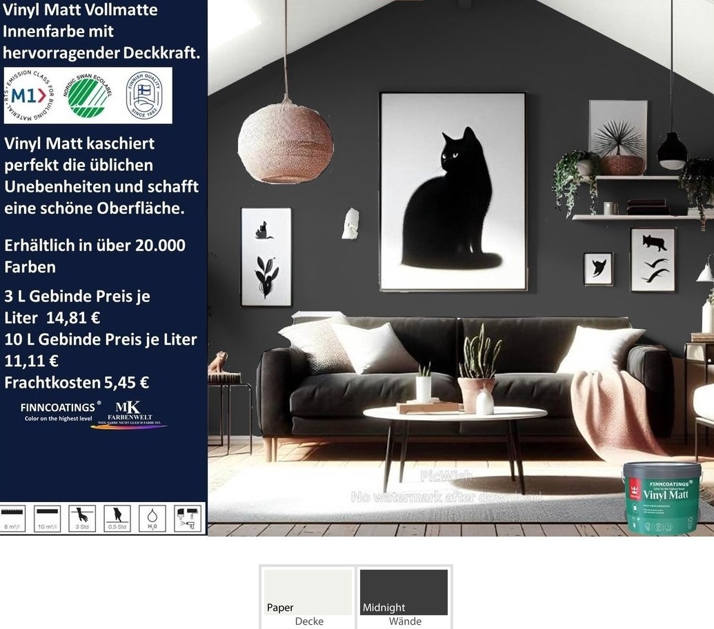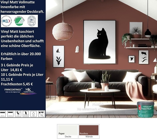 Dieser Anstrich eignet sich besonders für glatte Wände und Decken, da er eine gleichmäßige Oberfläche ergibt, selbst bei dunklen Farbtönen.